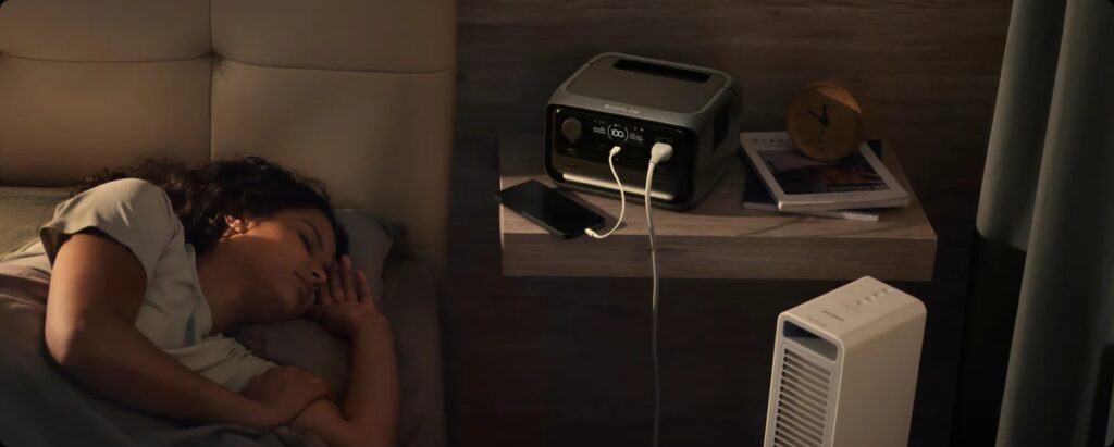 軽量で、駆動音30dB以下の静穏性が特徴の防水ポータブル電源です。