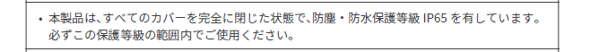 給電のためにカバーを開けた状態では、IP保護対象外となる点に注意が必要です。