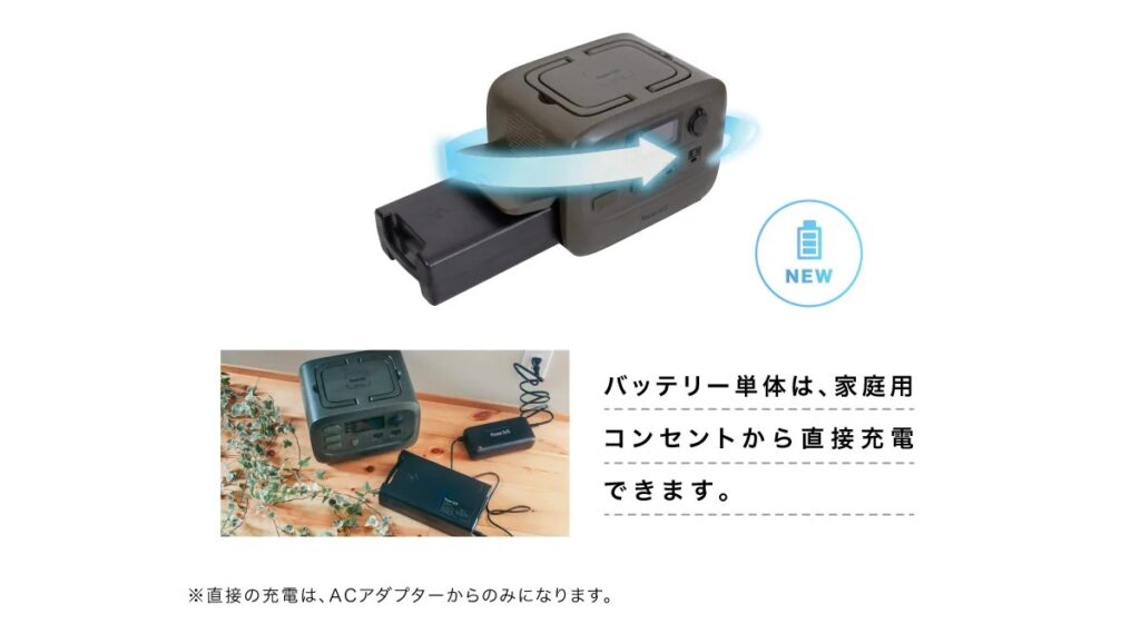 予備バッテリーを複数用意しておけば、カセットを入れ替える感覚で容量を拡張できます。